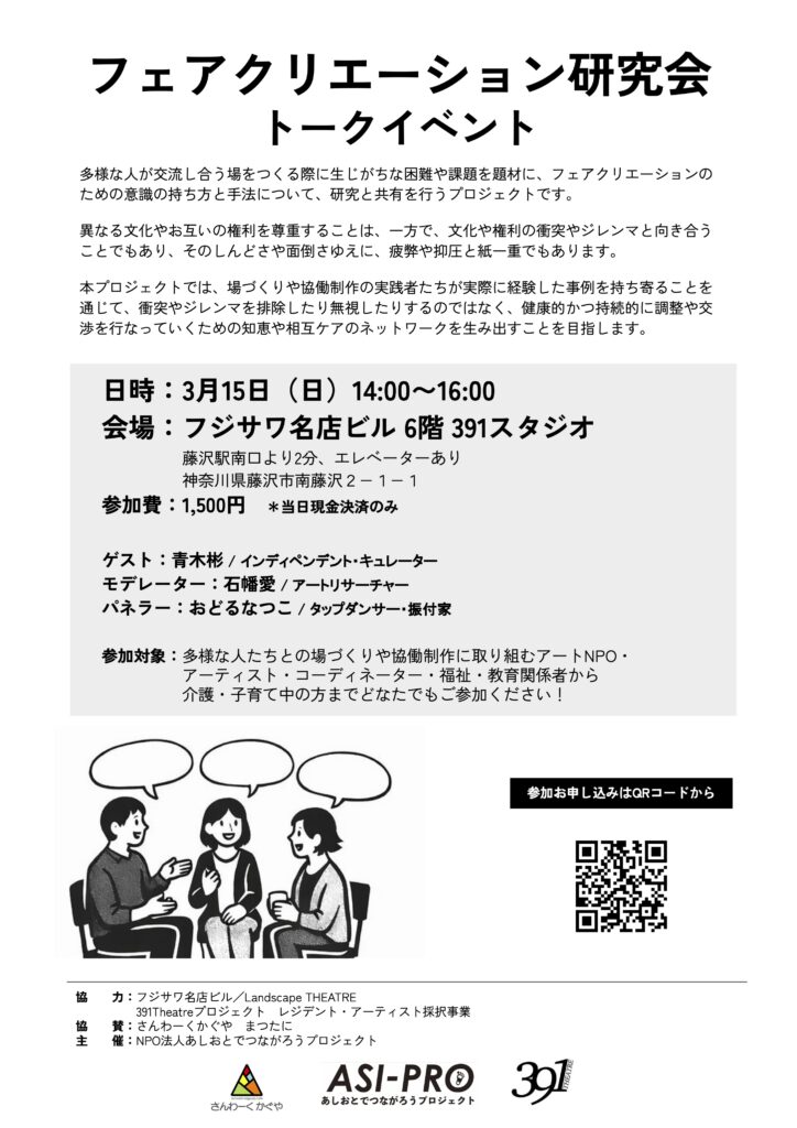 参加対象:多様な人たちとの場づくりや協働制作に取り組むアートNPO・アーティスト・コーディネーター・福祉・教育関係者から介護・子育て中の方までどなたでもご参加ください!